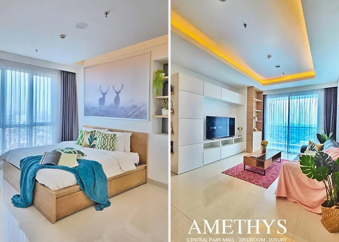 Gasten kunnen kiezen voor een verblijf in Amethyst By Sanliving - 3Br & 1 Maid Room - Central Park Mall Jakarta van 107 m² wanneer ze de wijk Grogol in Jakarta bezoeken. Er is wifi voor zowel zakenreizigers als vakantiegangers.